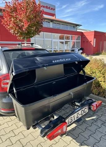 Die Uebler Heckbox B1 wird mittels geeigneten Trägersystem auf der Anhängerkupplung montiert und kann für zusätzliches Gepäck verwendet werden. Die Heckbox ist mit verschiedenen Trägerserien der Firma Uebler kompatibel. Der Träger ist nicht im Lieferumfang enthalten.