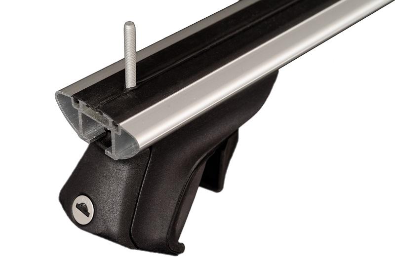 Durch das innovative Stützfußkonzept lässt sich diese Trägersystem auf diverse Fahrzeuge mit aufliegender / integrierter Dachreling oder auf Fahrzeug mit offener Dachreling montieren.
