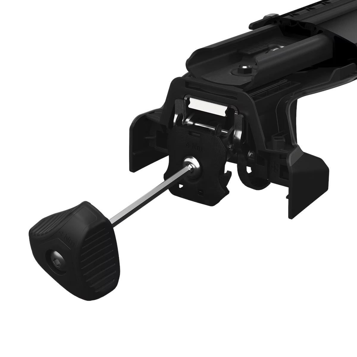Verschlossen wird der Träger mittels Metallschlössern, die in den Abdeckkappen verbaut sind. Es kann auch eine Gleichschließung mit vielen weiteren Thule Artikeln hergestellt werden. Achten Sie hierbei auf das Thule One-Key-System.