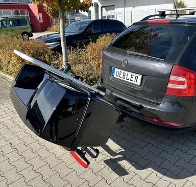 Die Abklappfunktion der Träger wird nicht beeinflusst. Der Zugang zu der Heckklappe bleibt auch bei montierter Heckbox noch gewährleistet.