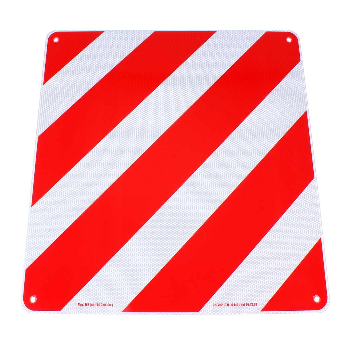 Aluminium Warntafel zur Kennzeichnung von überstehender Ladung am KFZ. Pflicht in diversen europäischen Ländern, insbesondere Italien. Kann mit Gurten an der Ladung befestigt werden. Rot-Weiß reflektieren für optimale Sichtbarkeit.